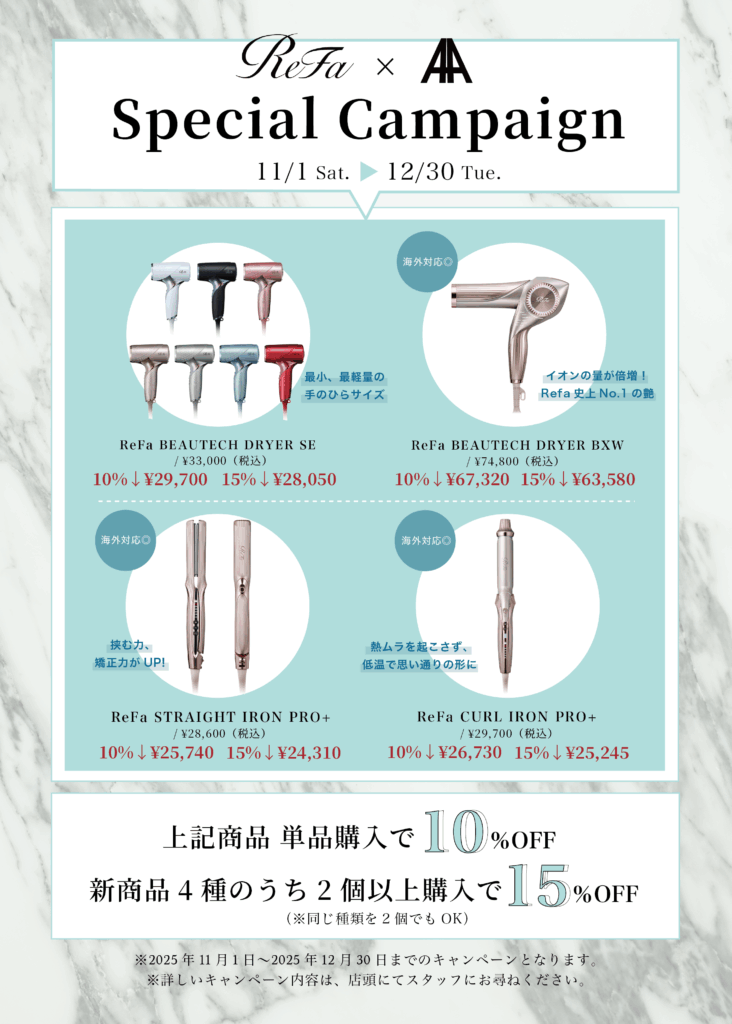Refa✖️AIN.ANLY.のスペシャルなキャンペーンを開催中!(11月1日〜12月30日まで)