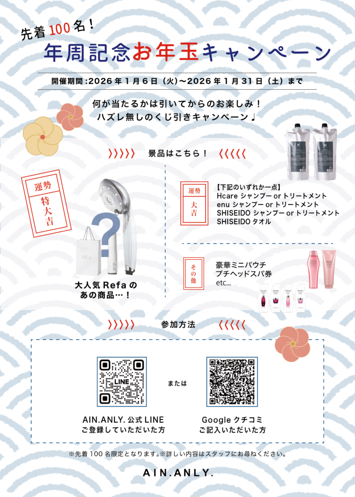 AIN.ANLY.では、年周を記念して先着100名様に豪華景品が当たる